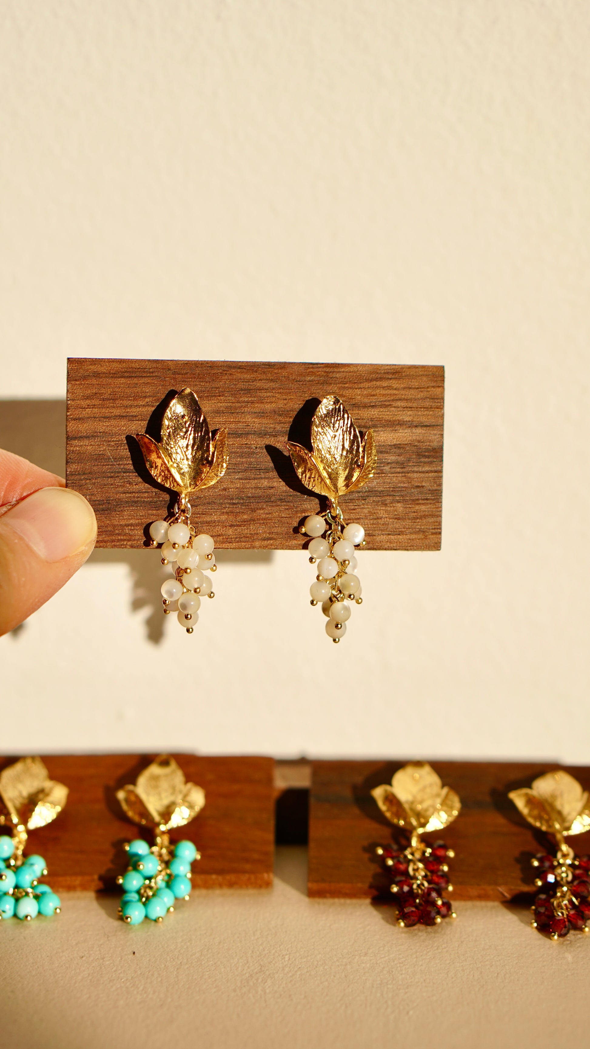 La collezione Echi del Mediterraneo si ispira alla bellezza naturale e alla ricca cultura del Mediterraneo. Ogni pezzo è meticolosamente lavorato a mano, combinando conchiglie, perle, foglie di fico, alloro, ulivo e grappoli d'uva. Questi elementi evocano l'eternità, la purezza, la vittoria e l'abbondanza. Ogni gioiello, che sia un orecchino, una collana o un anello, risuona come un'eco del Mediterraneo, aggiungendo un tocco di eleganza e mistero al tuo stile quotidiano.